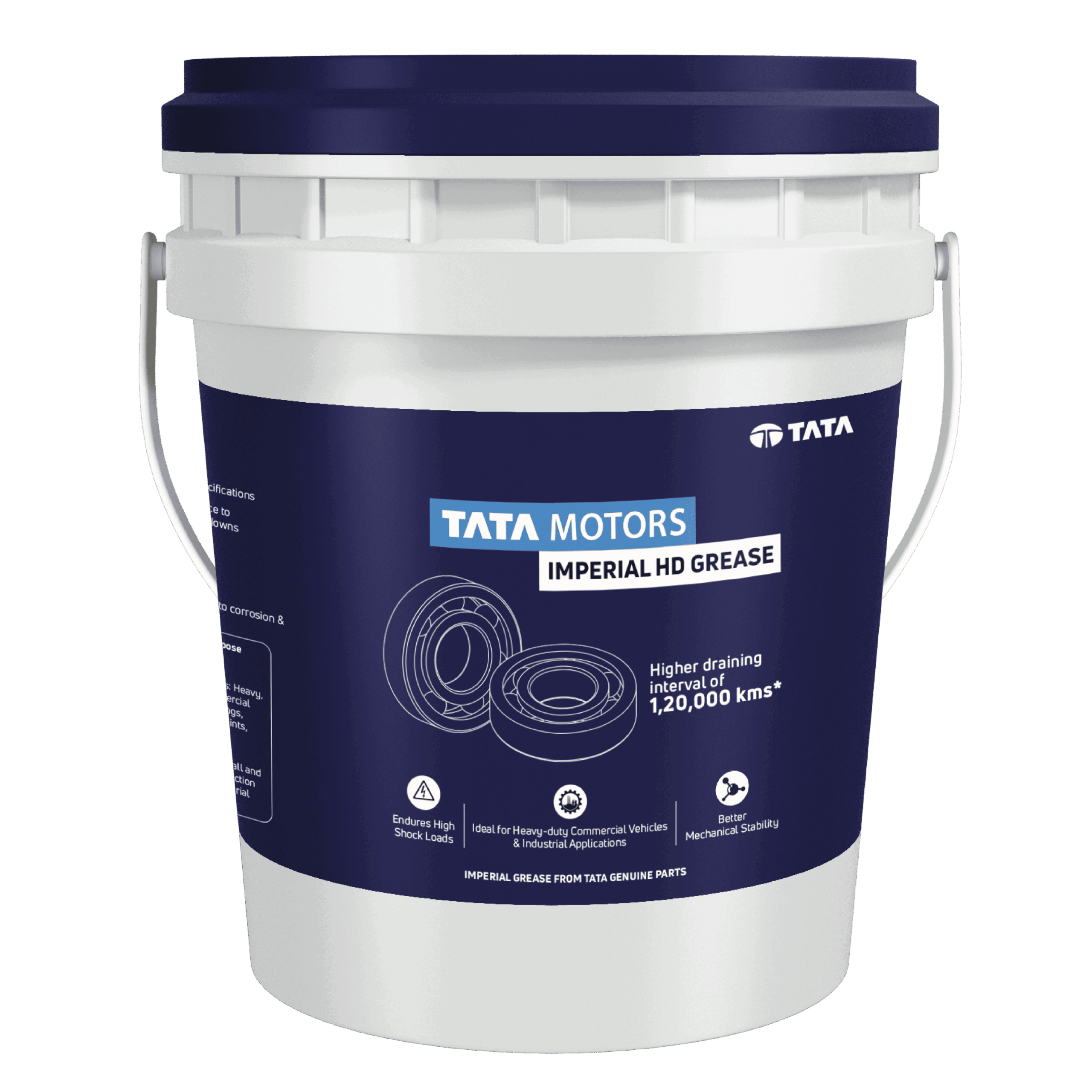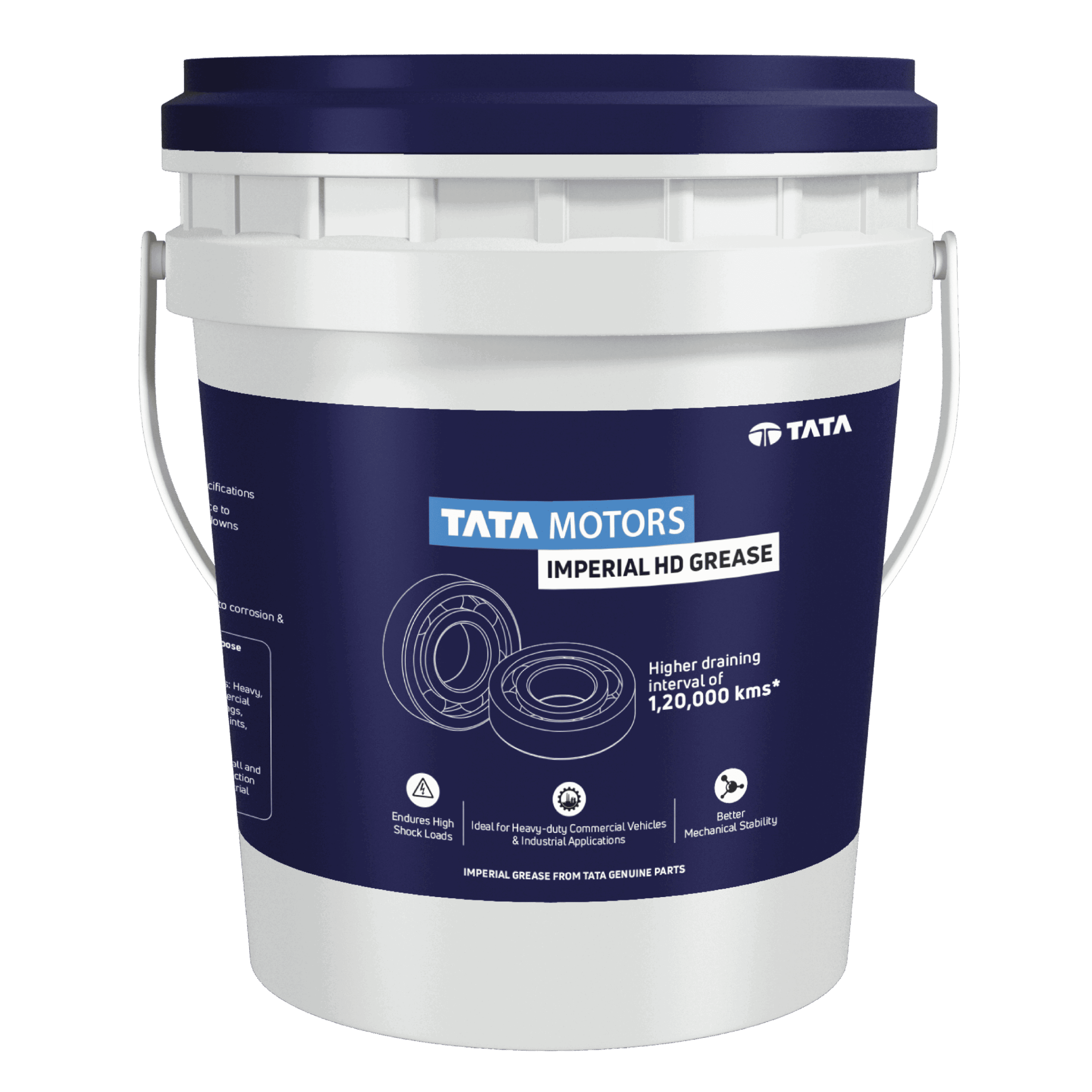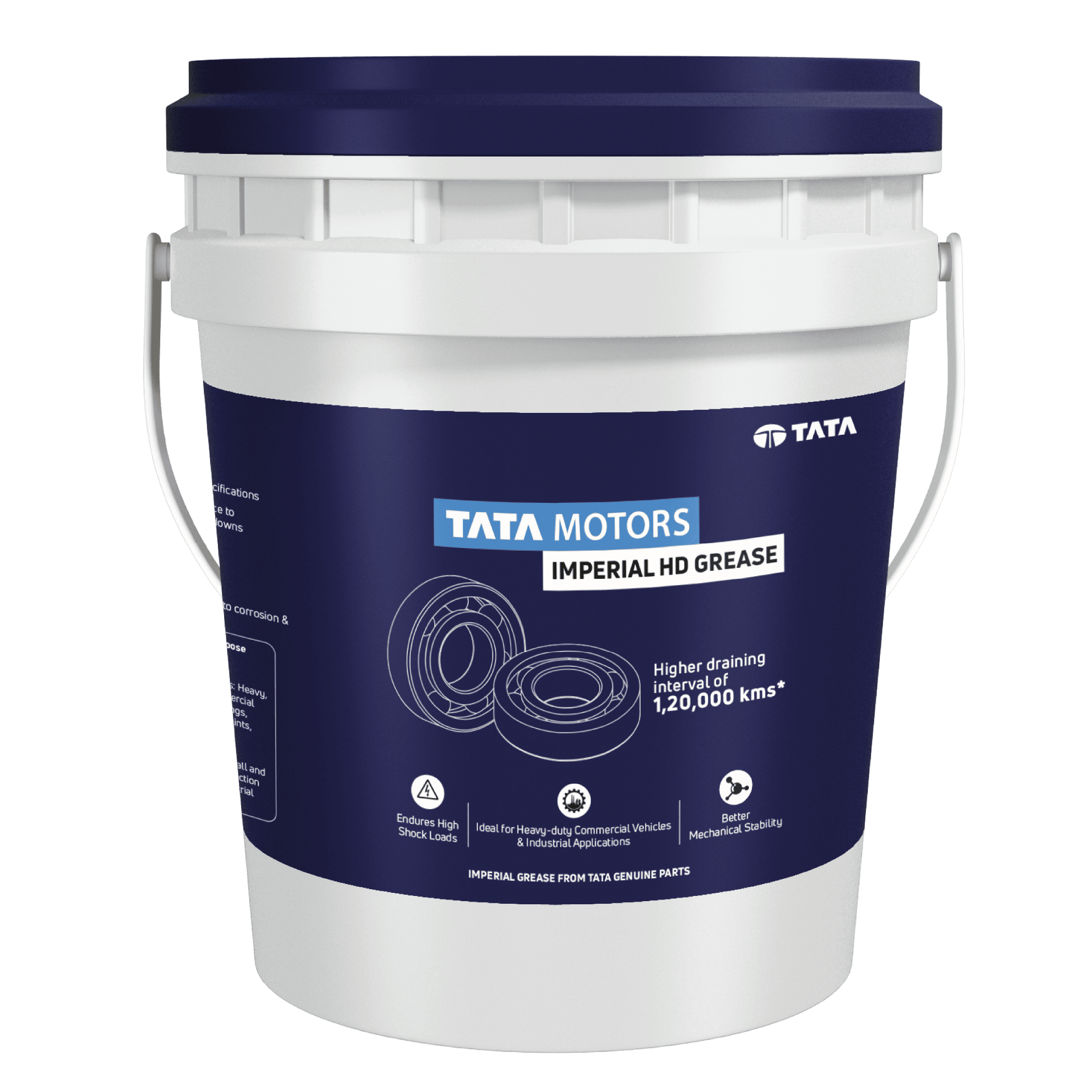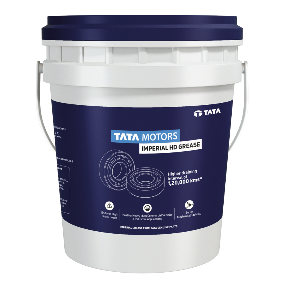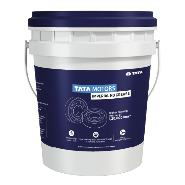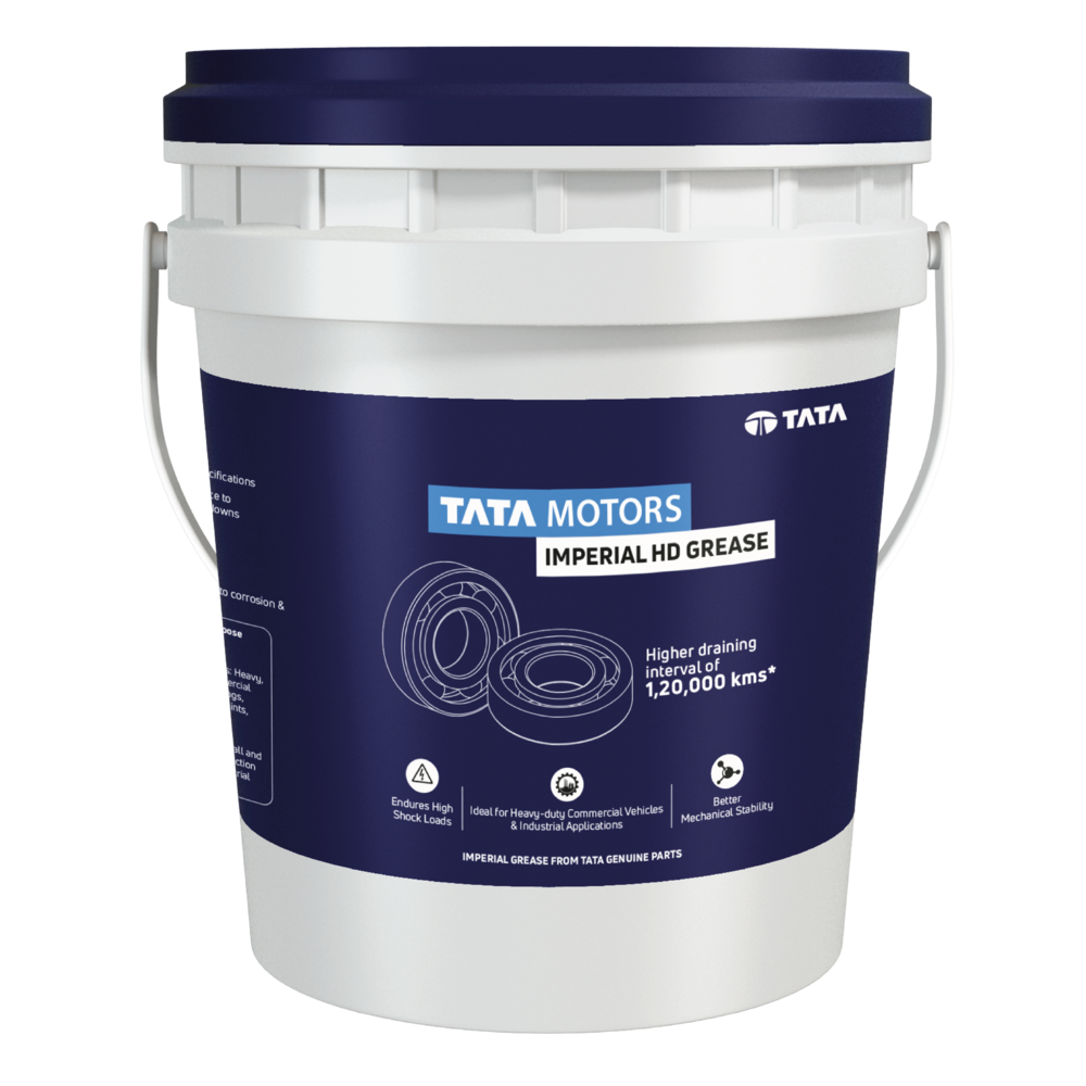 Tata Motors Imperial HD Grease is a premium lithium complex grease made with low-volatility mineral oil and special additives. Its soap system retains structure under extreme temperatures and high loads, reducing leakage and extending component life with its long re-lubrication interval. It also has excellent shear stability and surface adhesion.