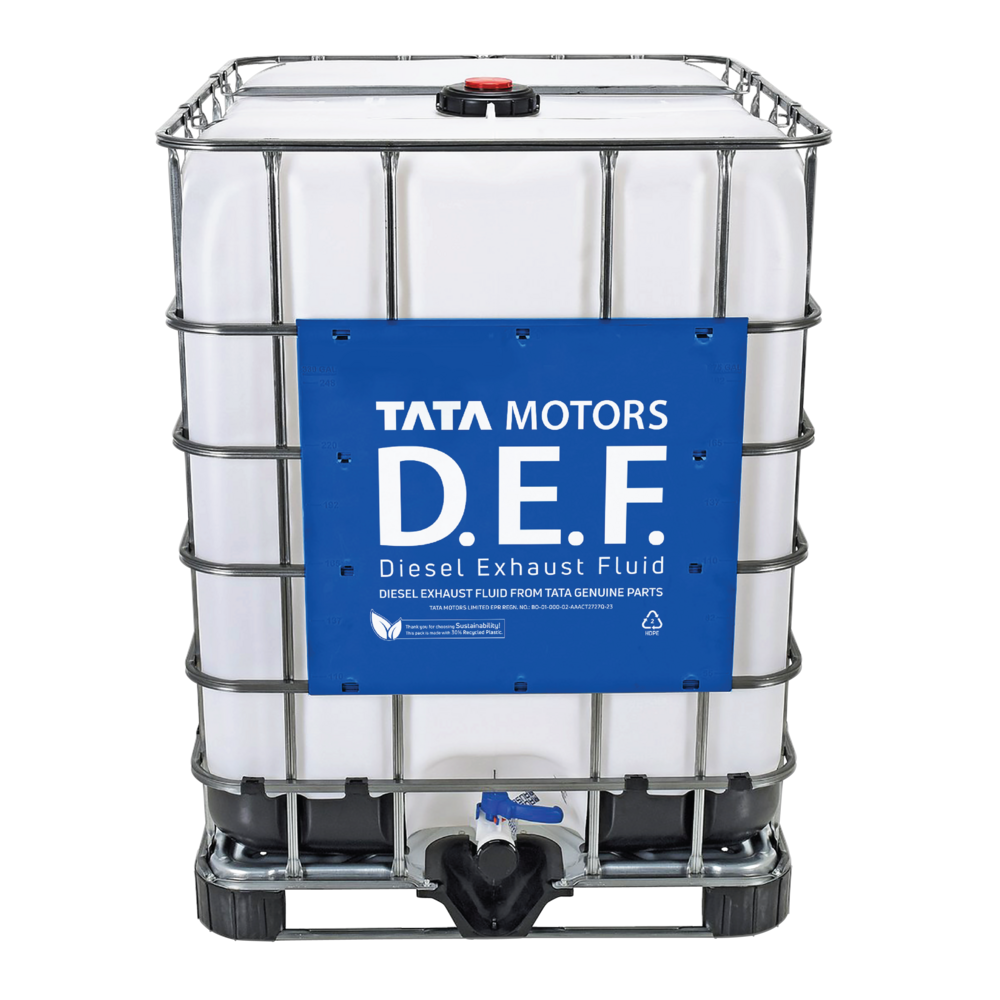 Tata Motors Diesel Exhaust Fluid (D.E.F.) is environmentally friendly and specifically formulated for all BS4 and BS6 vehicles equipped with Selective Catalytic Reduction (SCR) technology. Its patented design bears the mark of genuineness, ensuring authenticity and helping to prevent the use of counterfeit D.E.F. Available in various packs, it provides a reliable solution for emission control in Tata Motors Commercial Vehicles.